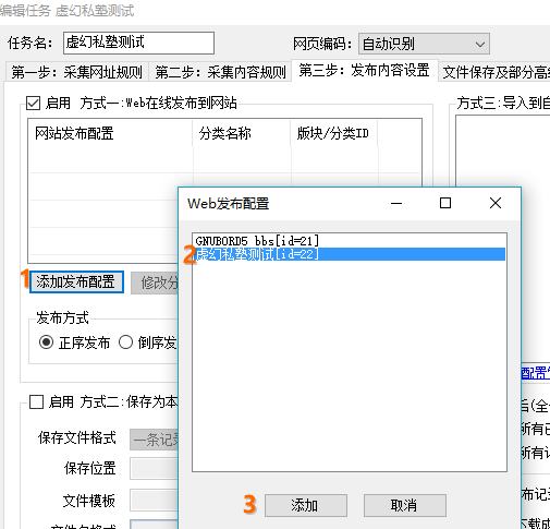 发布方式根据你的需要选择。添加完成后,点击保存即可。